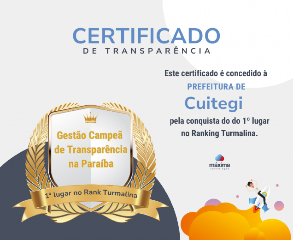 Parabéns pela conquista de alcançar a 1ª posição em transparência pública no Ranking Turmalina do TCE-PB! Esse é um reconhecimento mais do que merecido pelo trabalho árduo e pela dedicação em promover uma gestão aberta e acessível. A transparência é um pilar essencial para o fortalecimento da confiança da sociedade e para um futuro mais justo e igualitário. Que essa vitória seja só o começo de muitos outros avanços. Parabéns a todos os envolvidos!