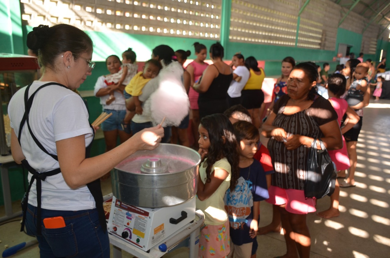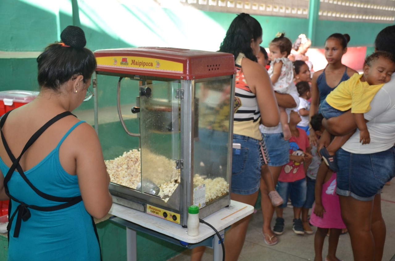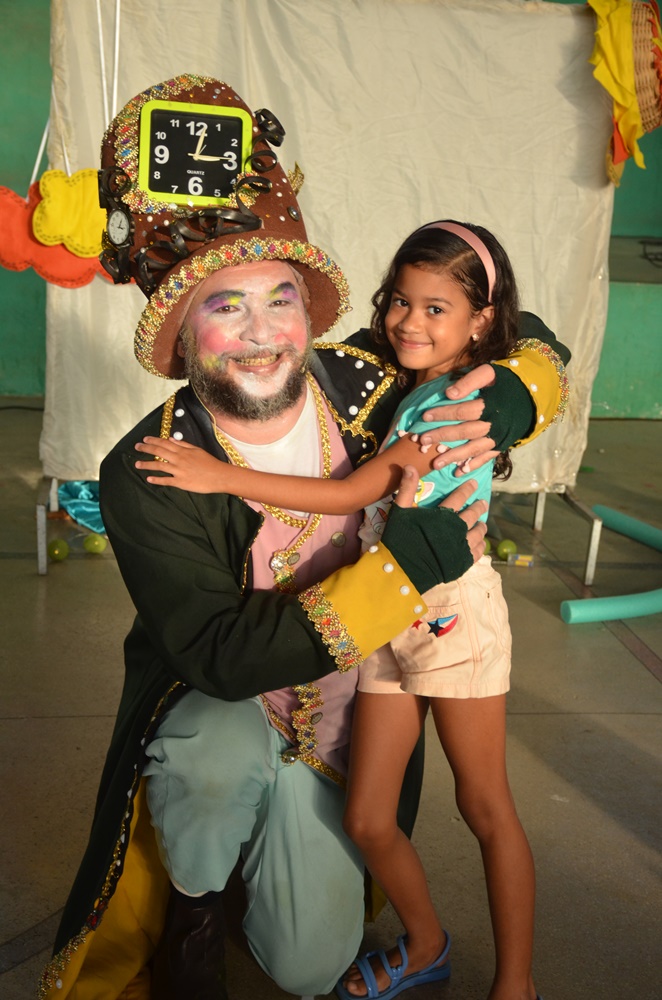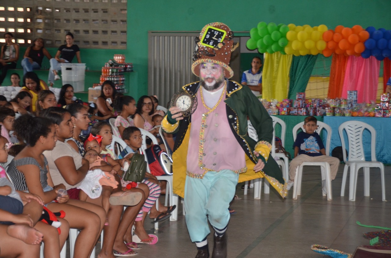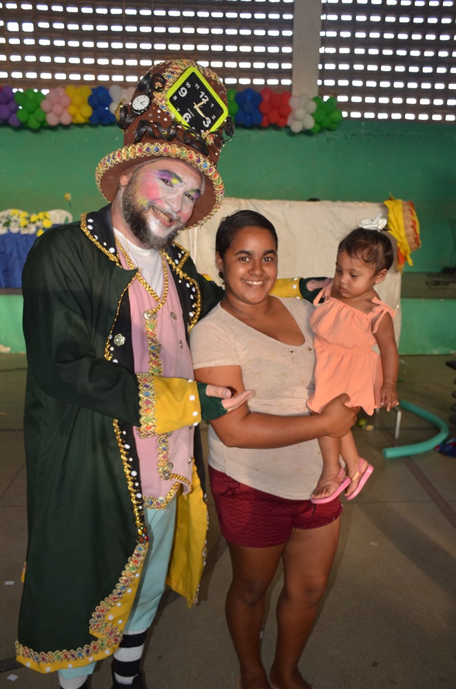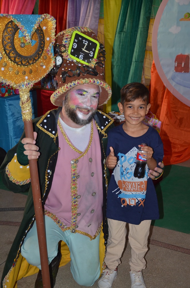 Foi uma tarde de muita alegria, com pula-pula, distribuição de pipocas, algodão doce, lanches para todos os presentes, muitos brindes e apresentação de uma peça infantil com o ator e diretor Vando Farias.